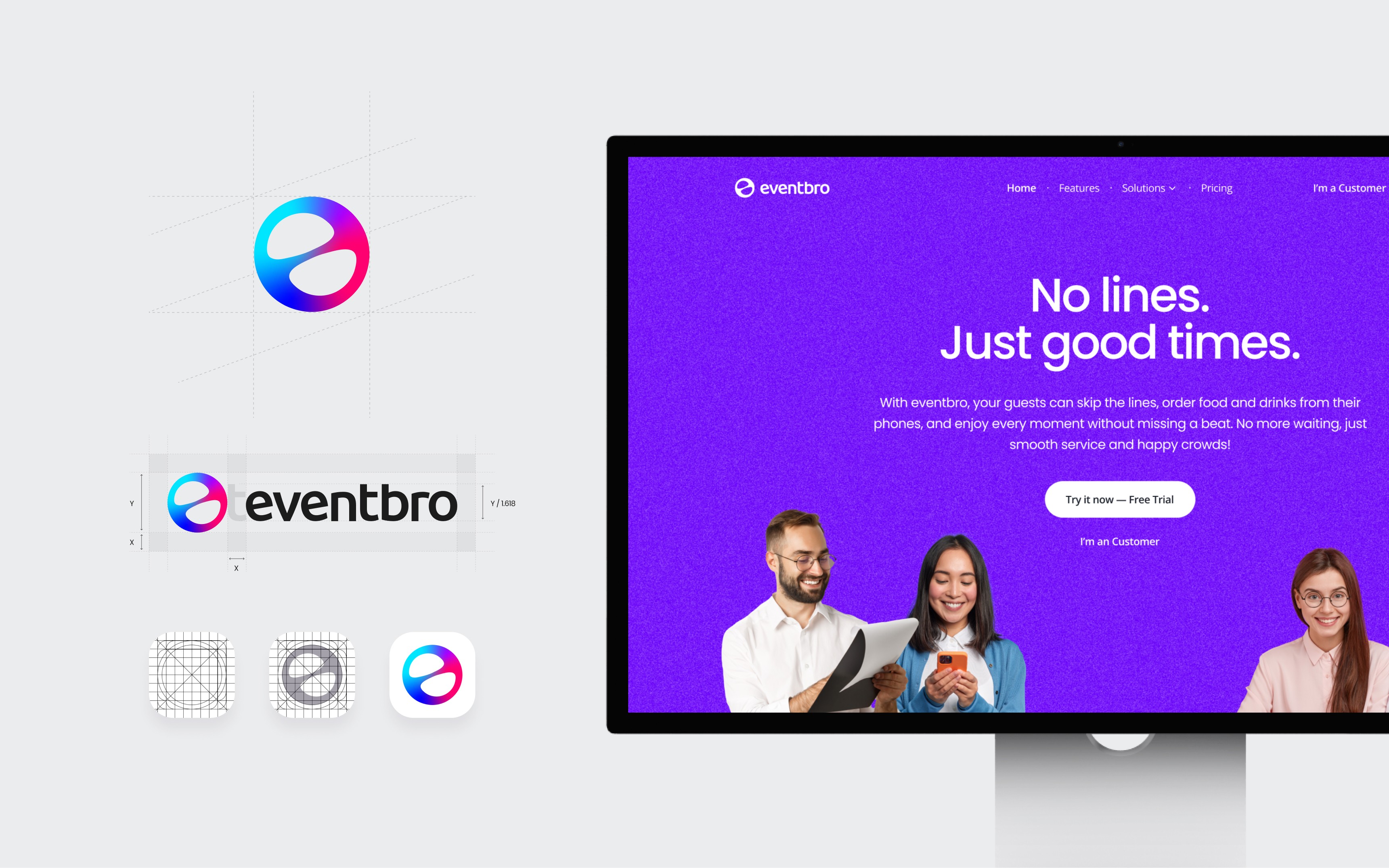 I created the Eventbro logo, brand identity, and website in parallel with the product work.