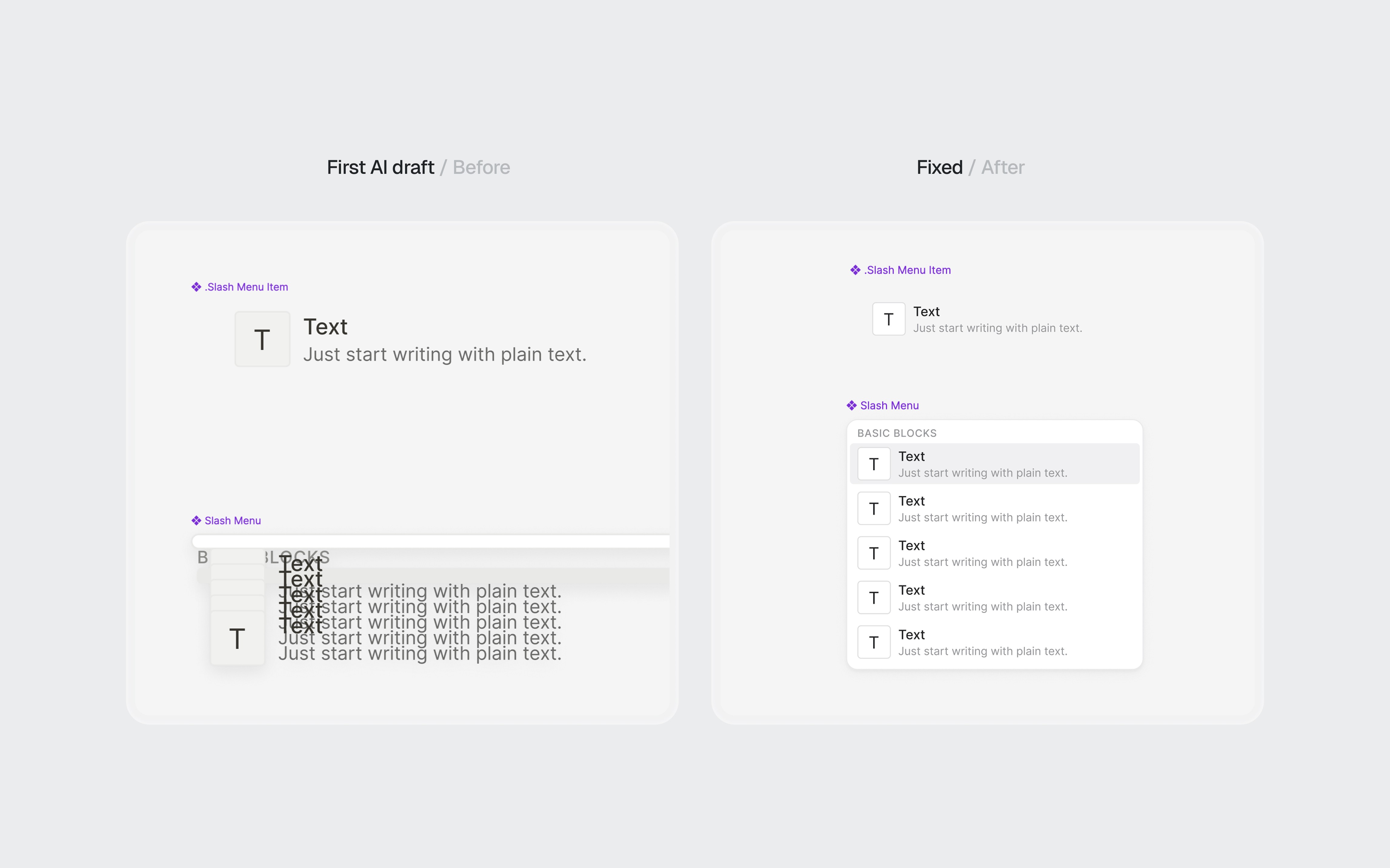 AI-generated components before and after refinement.